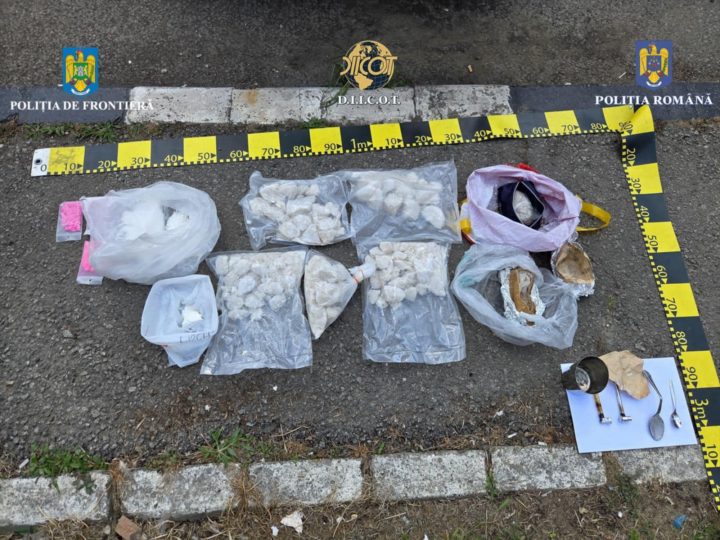 „Substanțele interzise au fost descoperite în bordul autoturismului și în două genți, ascunse printre diverse obiecte de vestimentație.
