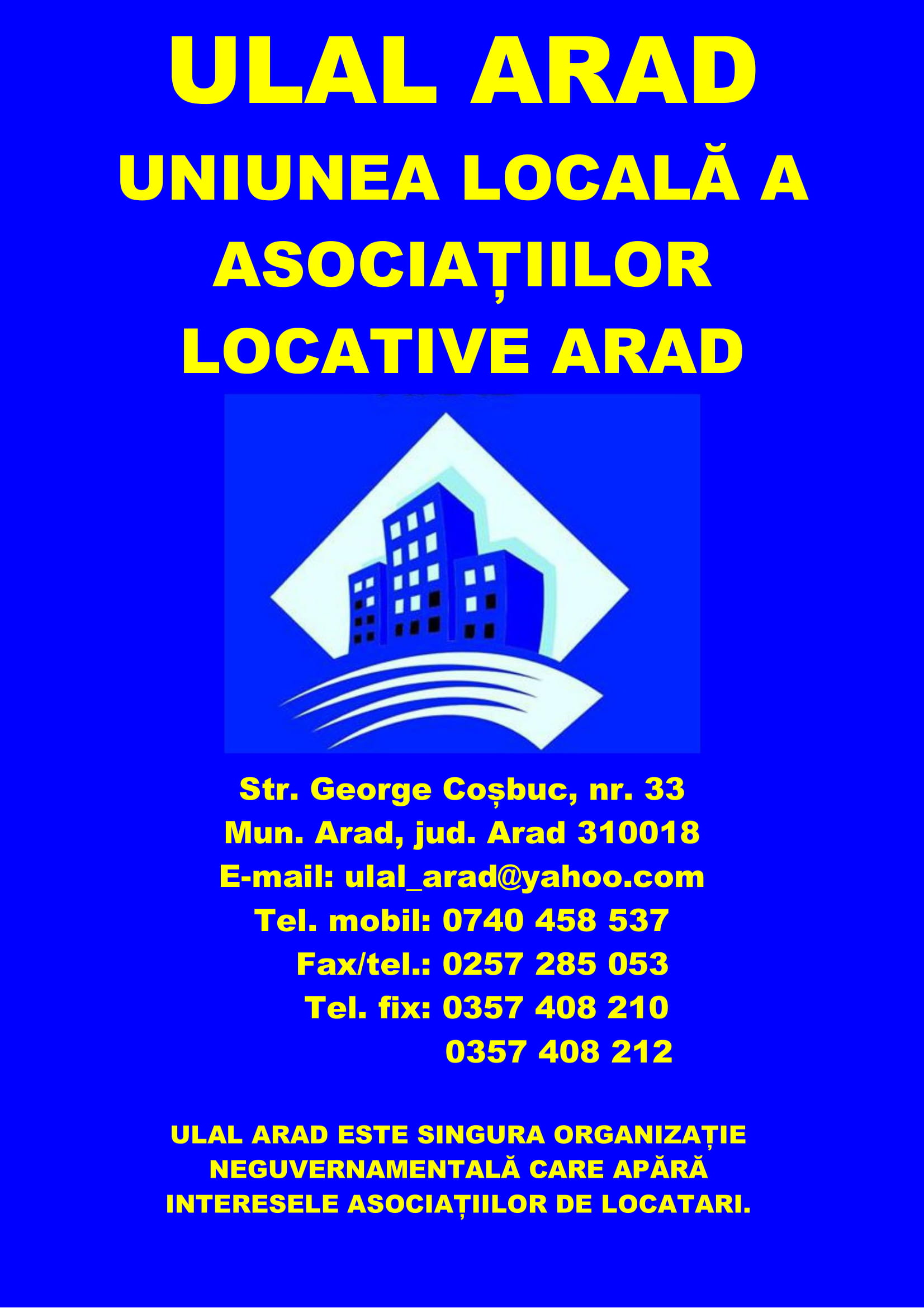 Asta pentru că ULAL și Agenția CAR și-au mutat sediul pe strada George Coșbuc, la numărul 33. Codul poștal al noii adrese este 310018.