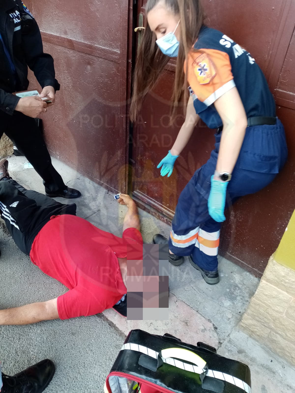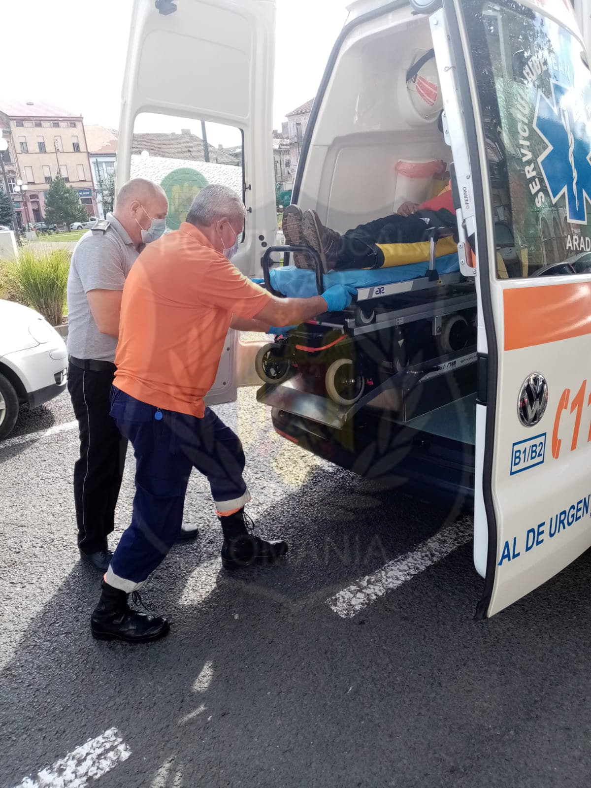 În vreme ce unul dintre polițiști îl supraveghează să nu-și înghită limba și ia măsuri minime de asigurare față de autoaccidentare, colegul său apelează ambulanța care sosește rapid la fața locului, îl preia pe bolnav cu ajutorul polițiștilor locali și îl stabilizează la fața locului. 11:19.