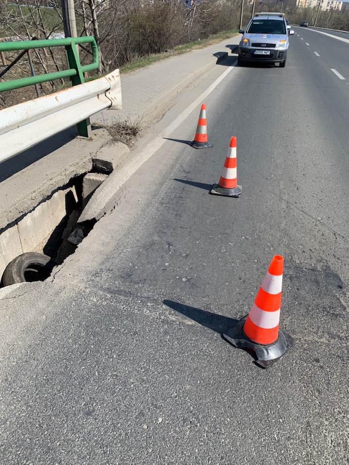 „În urma unei sesizări cu privire la surparea unei bucăți din carosabil la urcarea pe podul Micălaca, pe prima banda de circulație în sensul de mers înspre Activ Club, polițiștii locali cu atribuții de circulație au acționat intr-un timp foarte scurt la securizarea zonei și la fluidizare traficului pentru evitarea producerii unor incidente potențial grave, până la sosirea unei echipe de intervenție în vederea remedierii situației”, se arată într-o informare a Poliţiei Locale.