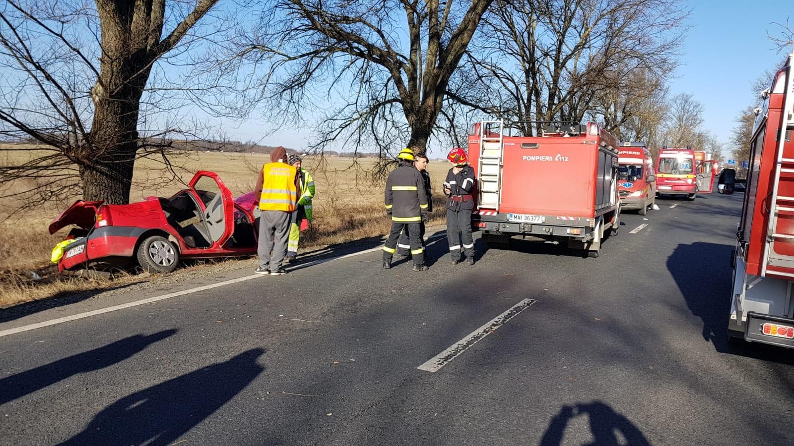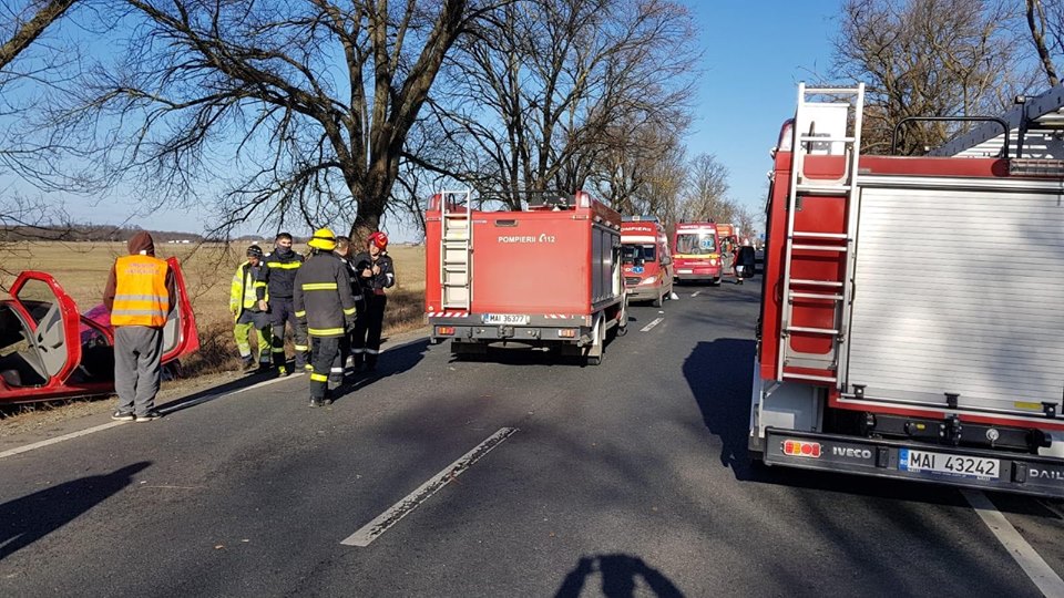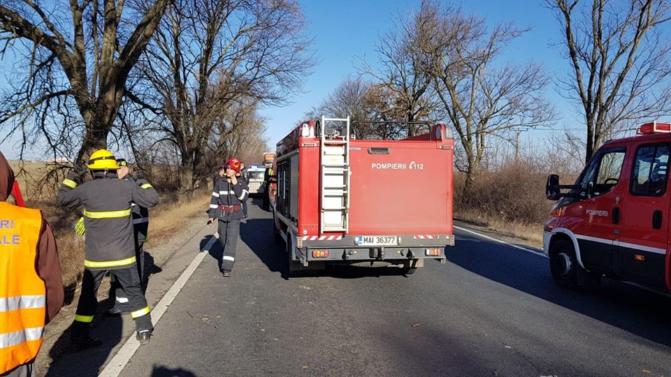 În urma impactului, un autoturism a ieșit de pe carosabil, iar două persoane au rămas încarcerate. Din cadrul Detașamentului Arad au intervenit la fața locului o autospecială de stingere, o autospecială pentru descarcerare și două ambulanțe SMURD.