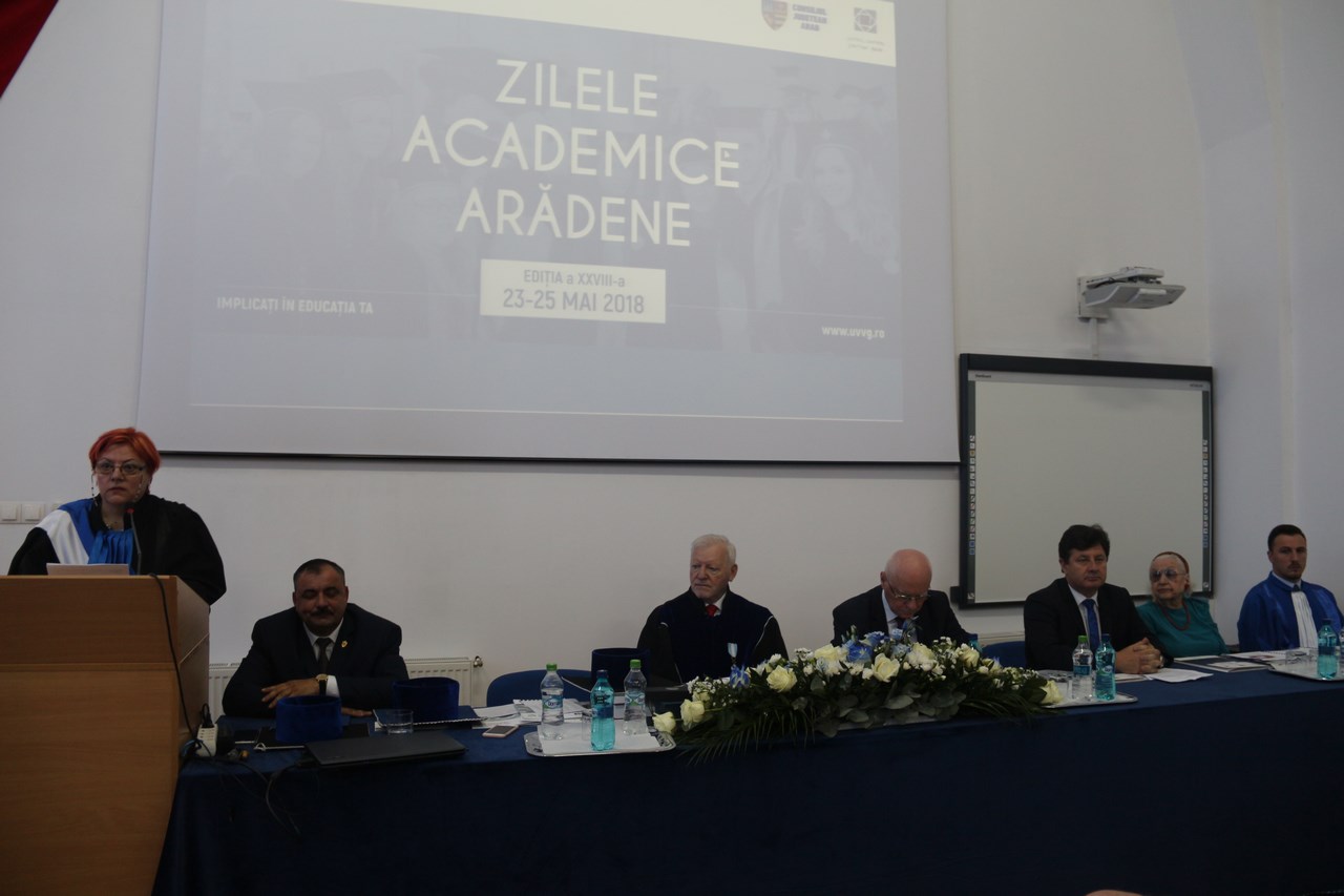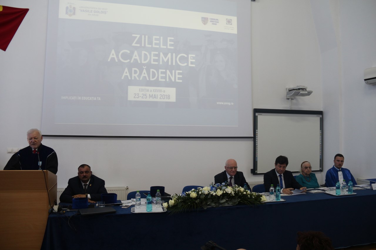Prof. univ. dr. Aurel Ardelean, preşedintele Universităţii de Vest „Vasile Goldiş” din Arad, a declarat: „Am deschis cea de-a XXVIII-a ediţie a Zilelor Academice, prima manifestare ştiinţifică organizată de la înfiinţare de către Universitatea noastră, care s-a derulat în mod permanent, sub auspiciile unui eveniment deosebit. În acest an se împlinesc 100 de ani de la realizarea celui mai important act din istoria post modernă a României, unificarea provinciilor româneşti într-un stat unitar. Acest fapt îl sărbătorim cu deosebit respect, fiindcă Universitatea noastră este singura Universitate din România care poartă numele marelui corifeu al Marii Uniri. Programul Universităţii noastre de sărbătorire a Centenarului a fost cuprins în programul Ministerului şi al României Educate”.